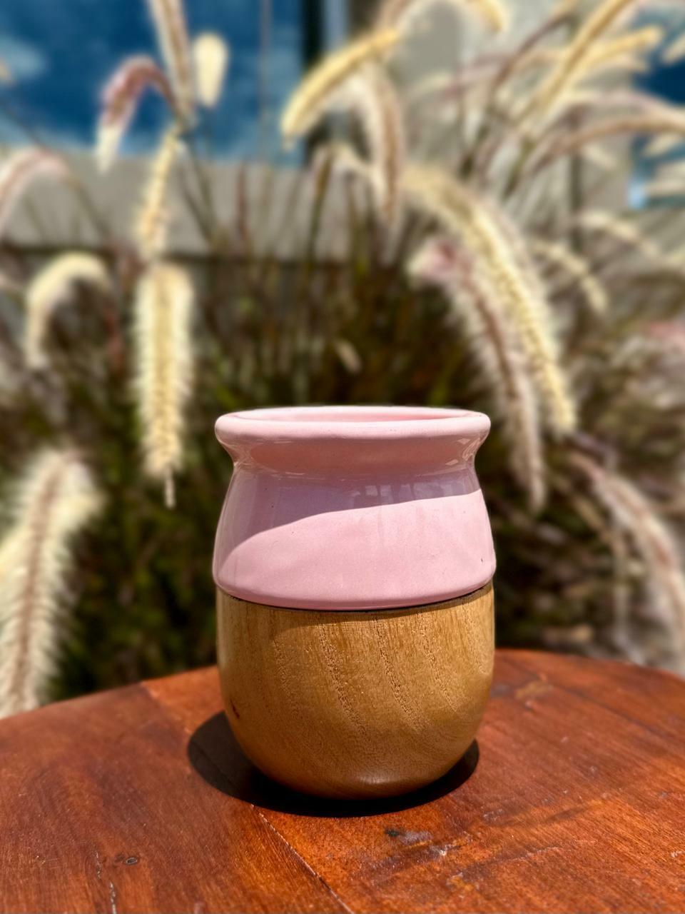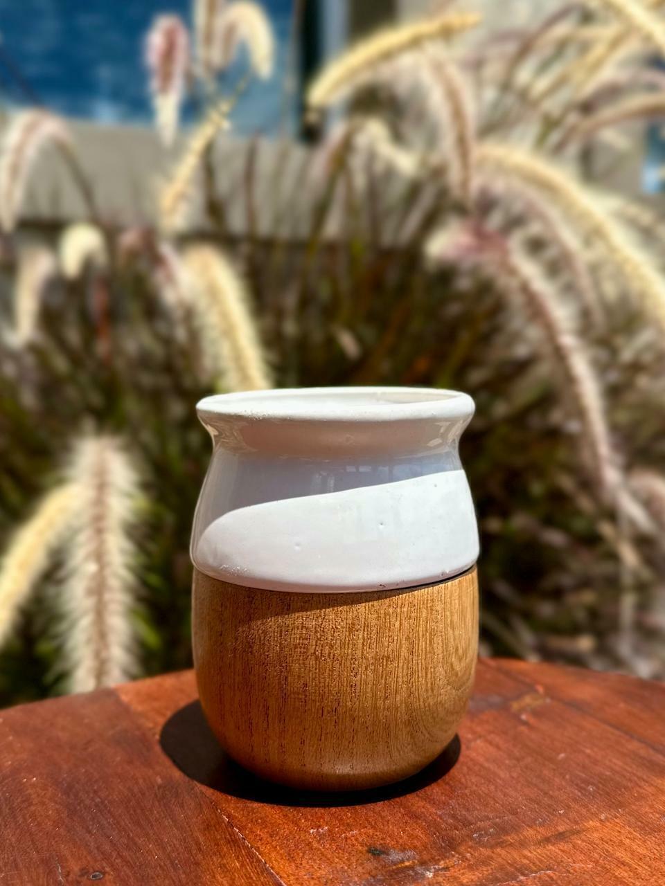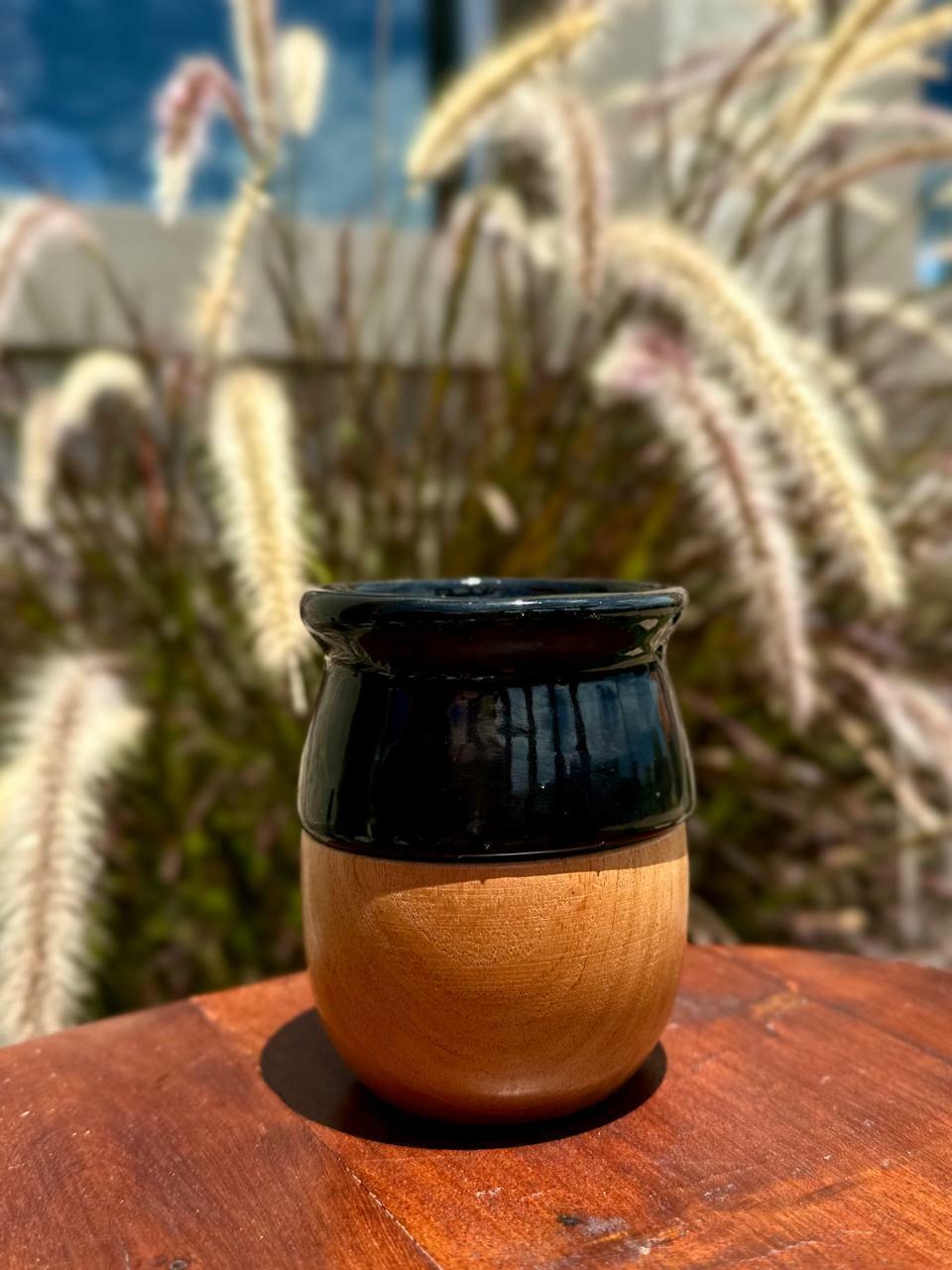 Mate madera de algarrobo con interior de cerámica.