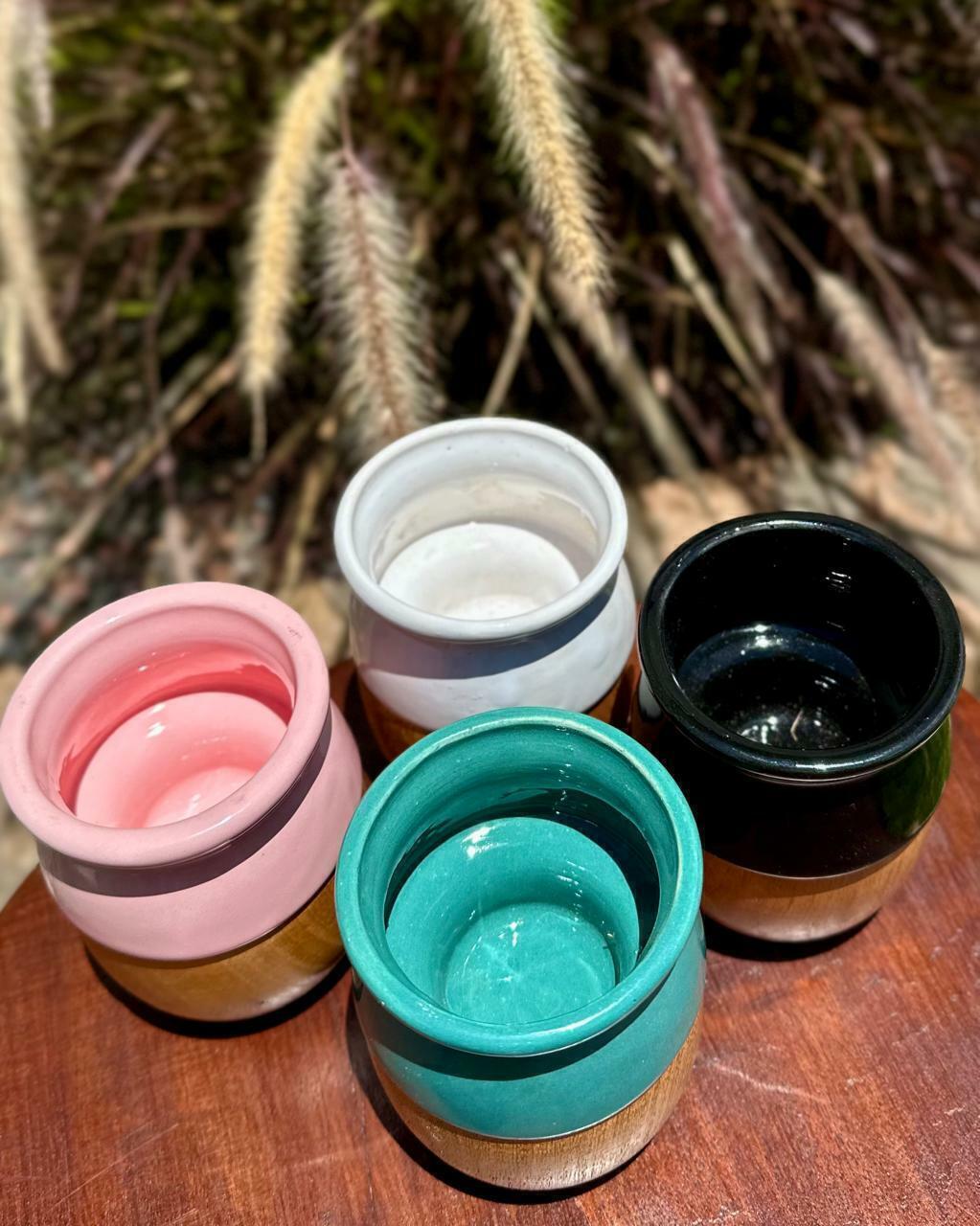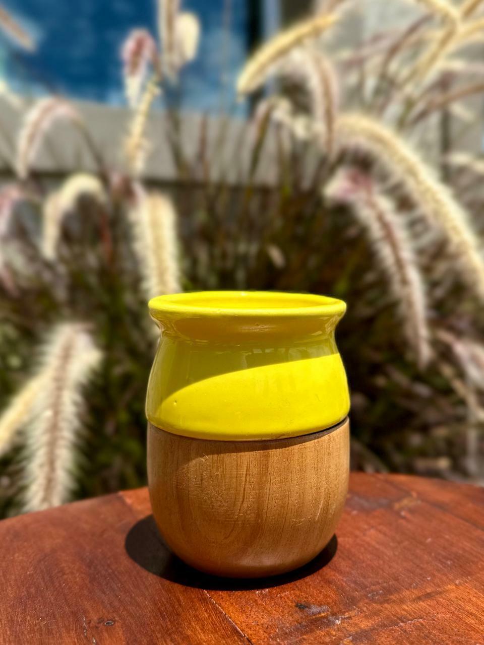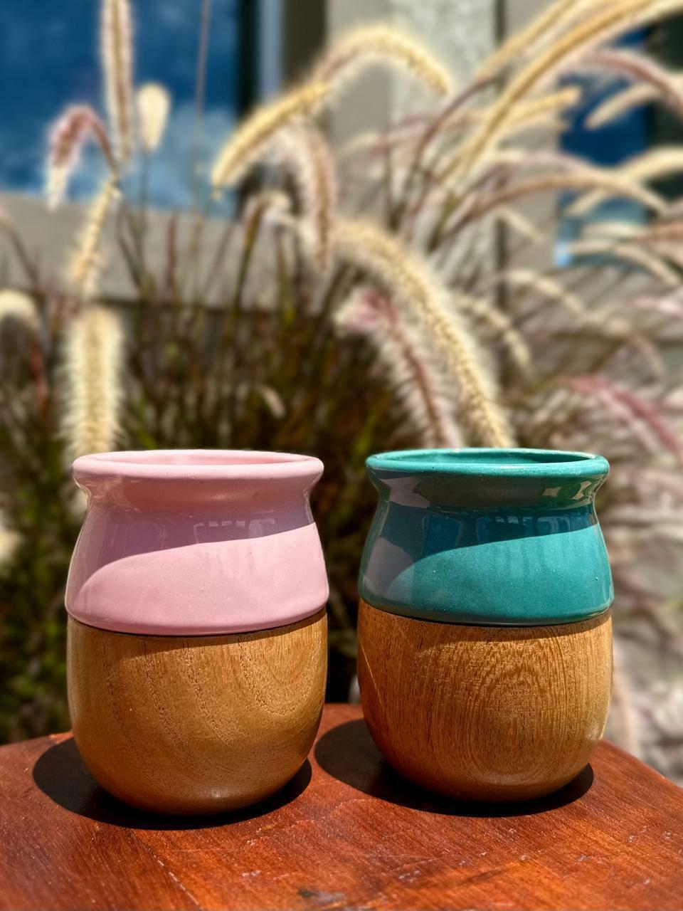 Mate madera de algarrobo con interior de cerámica.