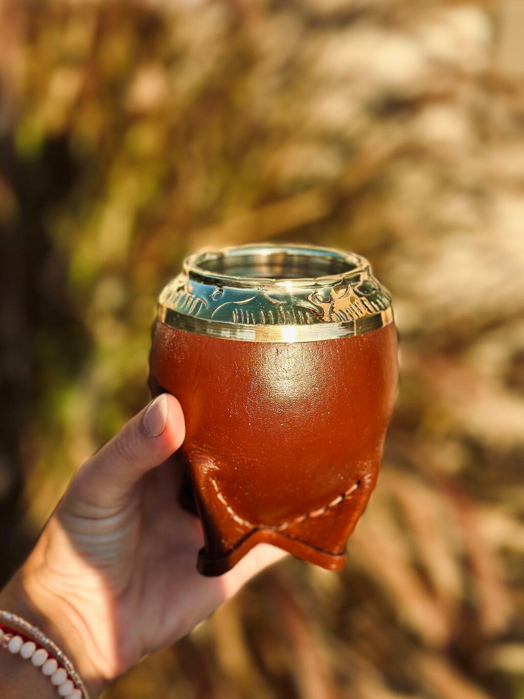 Mate torpedo de calabaza con virola de alpaca labrada.